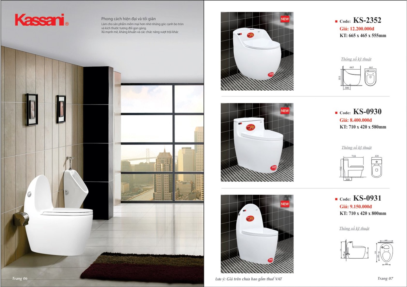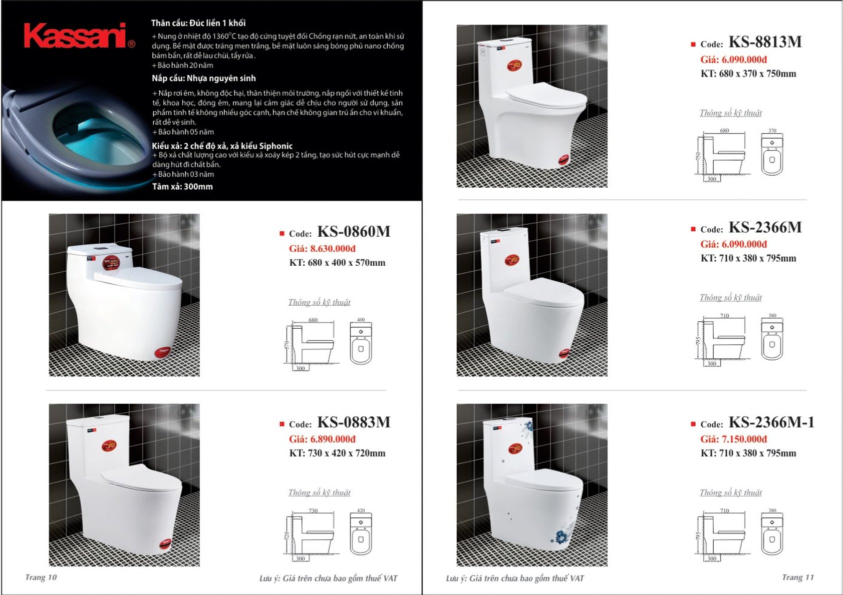 Dưới đây là bảng giá chi tiết các mẫu bồn cầu Kassani: